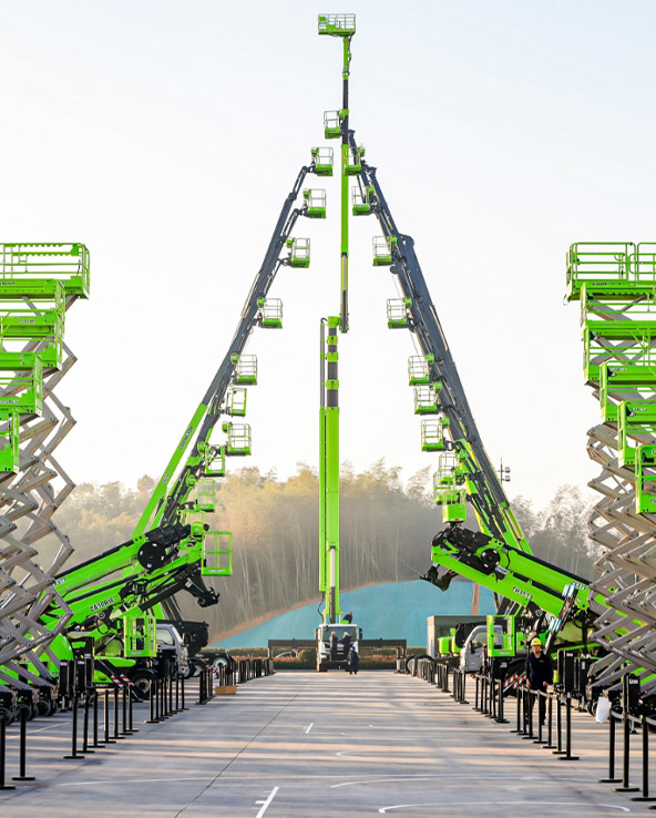 中聯(lián)重科智能高機目前有剪式、曲臂式、直臂式、伸縮臂叉裝車、車載式等七大類100余款產(chǎn)品,作業(yè)高度覆蓋6-95米,全面覆蓋市場上主流機型, 成為目前型譜最全的國產(chǎn)主機廠商,研發(fā)的產(chǎn)品在大高度、大承載力等方面達到國際領先水平;擁有全球作業(yè)高度最高的超高米段直臂產(chǎn)品。在行業(yè)內(nèi)首創(chuàng)全交流電驅(qū)鋰電剪叉,實現(xiàn)純電驅(qū)動、零排放、低噪音、節(jié)能高效、超強續(xù)航,引領剪叉產(chǎn)品的發(fā)展趨勢。